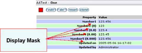 Data Type: Decimal Edit MasksFor Archie2Decimal attributes type, the user can now specify a simple display mask in the traditional "Unit of Measure" field which will provide some form of control over how numbers are displayed in EVA Netmodeler. See illustration below for an overview of the effect of different display masks on the number: "123.456".