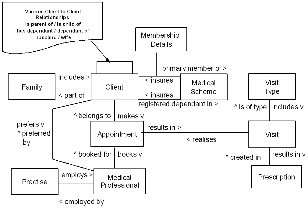 - Clients have relationships with one another, e.g. One is the parent of another, which is the child of the first etc.One Client may be designated a dependant of another in terms of a particular Medical Scheme